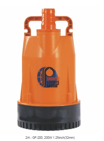 Pompa Showfou body bahan plastik atau dikenal dengan nama seri Goldfish atau seri GF, merupakan jenis pompa submersible power 200 watt